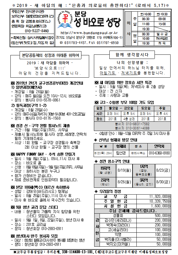[ÁÖº¸] 2019³â 8¿ù 18ÀÏ ÁÖº¸ÀÔ´Ï´Ù.