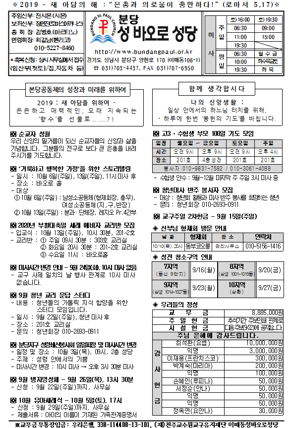 [ÁÖº¸] 2019³â 9¿ù 15ÀÏ ÁÖº¸ÀÔ´Ï´Ù.