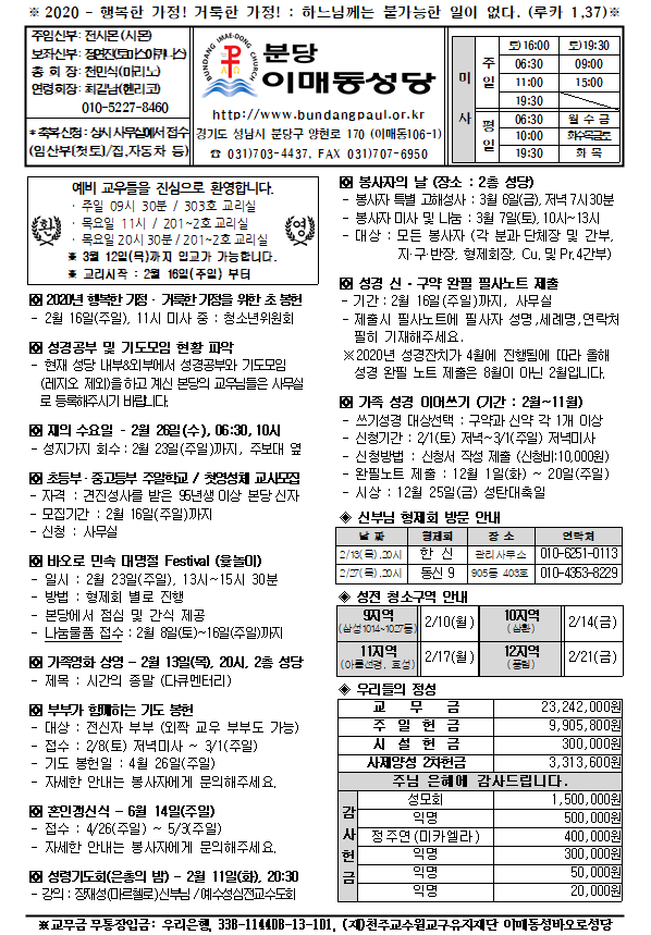 [ÁÖº¸] 2020³â 2¿ù 9ÀÏ ÁÖº¸ÀÔ´Ï´Ù.