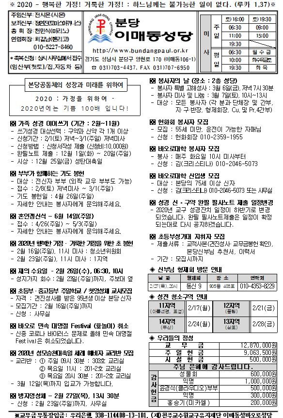[ÁÖº¸] 2020³â 2¿ù 16ÀÏ ÁÖº¸ÀÔ´Ï´Ù.