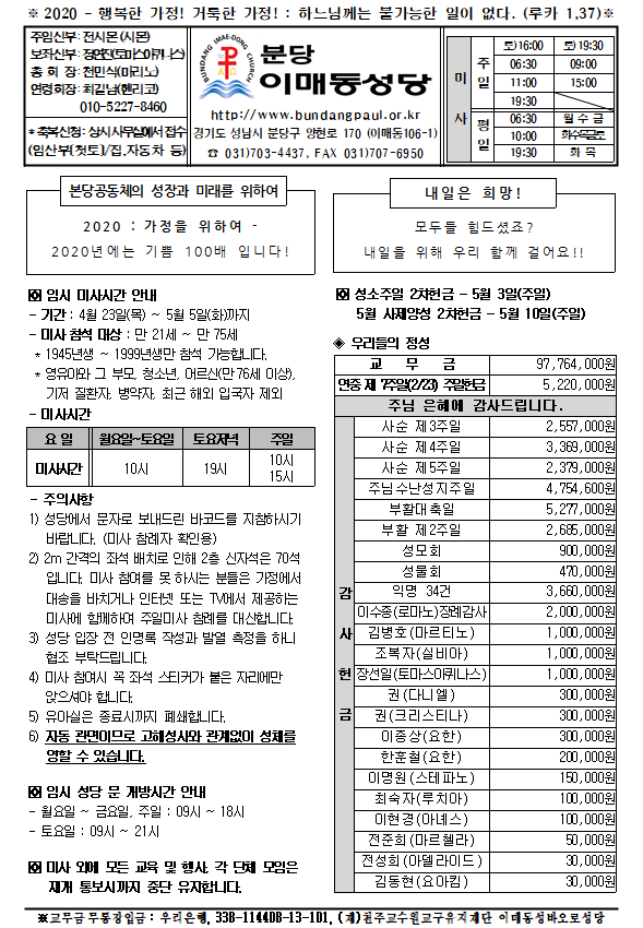 [ÁÖº¸] 2020³â 4¿ù 26ÀÏ ÁÖº¸ÀÔ´Ï´Ù.
