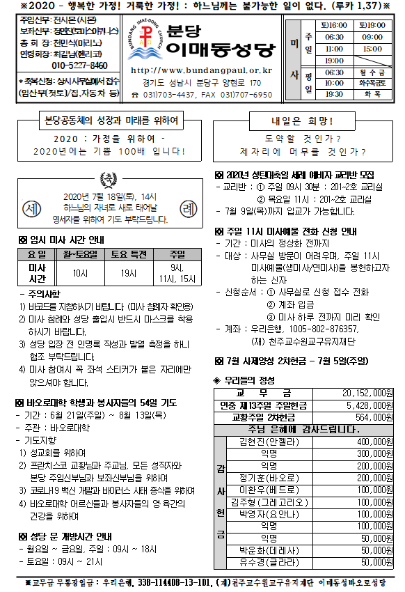 [ÁÖº¸] 2020³â 7¿ù 5ÀÏ ÁÖº¸ÀÔ´Ï´Ù.