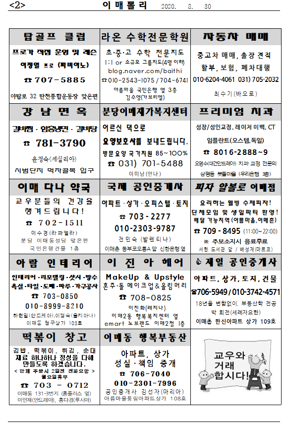 [À̸Żʸ®] 2020³â 8¿ù 30ÀÏ À̸Żʸ®ÀÔ´Ï´Ù.