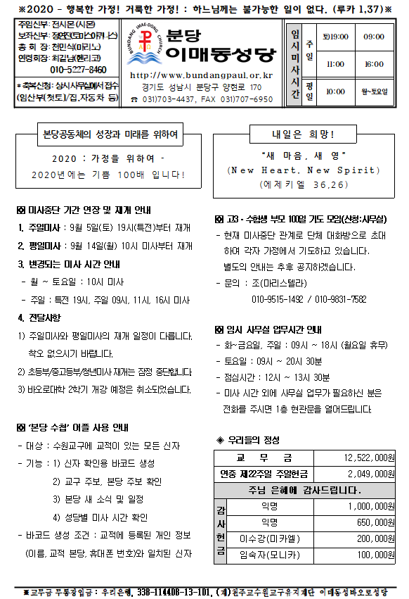 [ÁÖº¸] 2020³â 9¿ù 6ÀÏ ÁÖº¸ÀÔ´Ï´Ù.
