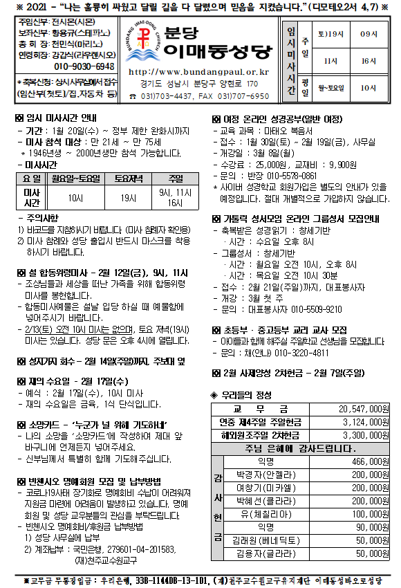 [ÁÖº¸] 2021³â 2¿ù 7ÀÏ ÁÖº¸ÀÔ´Ï´Ù.