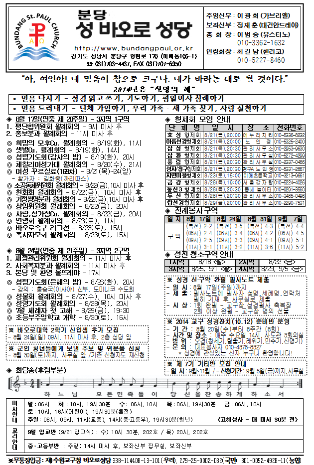 [ÁÖº¸] 2014³â 8¿ù 17ÀÏ ÁÖº¸ÀÔ´Ï´Ù