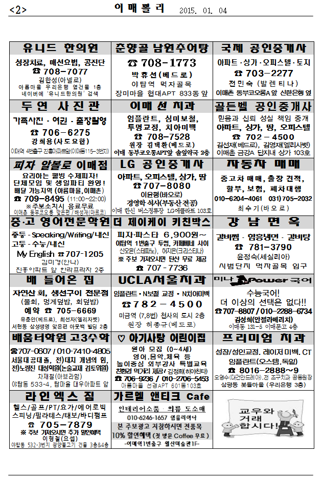 [À̸Żʸ®] 2015³â 1¿ù 4ÀÏ À̸Żʸ®ÀÔ´Ï´Ù.