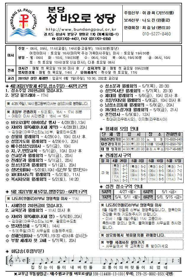 [ÁÖº¸] 2015³â 4¿ù 26ÀÏ ÁÖº¸ÀÔ´Ï´Ù.